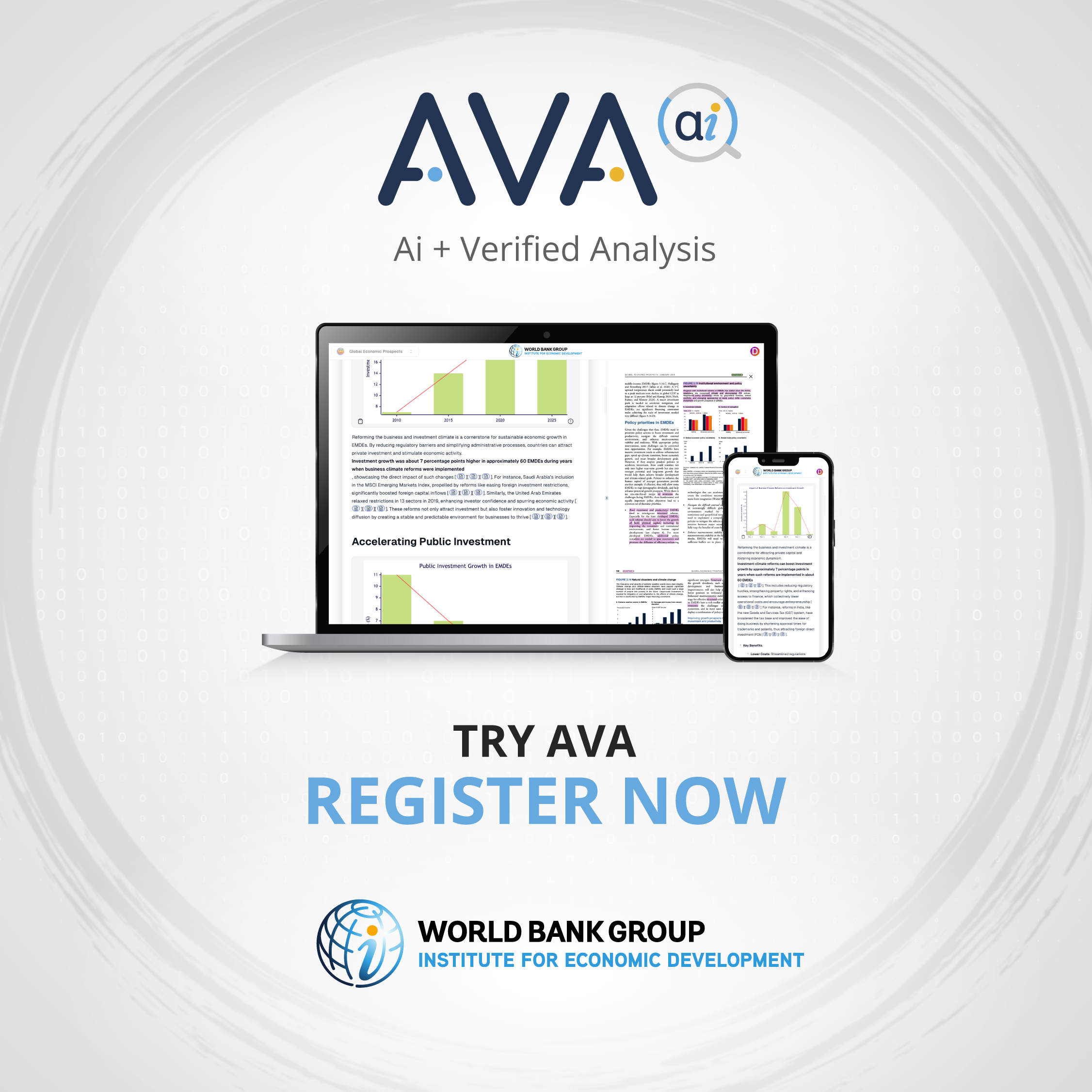 Meet AVA, our AI research assistant, trained in more than 4,000 pieces of World Bank research and fluent in 60+ languages.